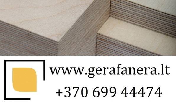 Fanera naudojama: Baldų gamybai; Vidaus / lauko apdailai; Sienų konstrukcijoms; Vilkikų priekaboms, puspriekabėms; Sunkvežimiams; Betonavimo darbams; Pastoliams; Klojiniams; Perdangoms; Grindims; Lentynoms; Reklaminiams stendams; Valtims; Laivams; Jachtoms; Kitiems darbams, kur reikalaujama atsparumo drėgmei, vandeniui, trinčiai. Išsamesnė info: www.gerafanera.lt, +370 699 44474 UAB Likmerė Kauno g. 122, Ukmergė, LT-20115 Mob. +370 699 44474 Tel. +370 340 55805 Faks. +370 340 44419 El. paštas linas@likmere.lt Tinklalapis www.gerafanera.lt Raktiniai žodžiai: prekyba fanera gamintojo kaina, baldinė fanera, statybinė fanera, pramoninė fanera, drėgmei atspari fanera, laminuota fanera, gera fanera, beržo fanera, fanera vilkikams, priekaboms, puspriekabėms, sunkvežimiams, fanera betonavimui, fanera pastoliams, fanera klojiniams, fanera perdangoms, fanera valtims, jūrinė fanera, faneros gaminiai, Latvijas Finieris fanera, faneros atraižos, fanera Ukmergėje, prekyba faneros atraižomis