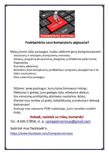 Sistemų, programų atnaujinimas, įdiegimas, profilaktiniai patikrinimai;