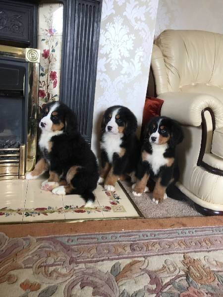 Puikūs Bernų kalnų šunų šuniukai Didžiuojamės ir džiaugiamės savo gražių berniukų ir gražių kalelių vada. Ši vada bus puikus veislės pavyzdys, turintis daugiau nei 23 metų patirtį su mumis ir veisimu. Mūsų nuostabi vada turi savitą charakterį, kupina meilės, gerumo ir drąsos, ir buvo tikras džiaugsmas būti šalia. Dabar jie ieško savo amžinų namų. Visi jie turi gražius raštus ir atitinka veislės tipą. Kaina: 500 EUR