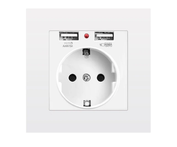 Parduoduodame rozečių su 2 USB (2A) įkrovimo lizdus, 110250 V (16A).