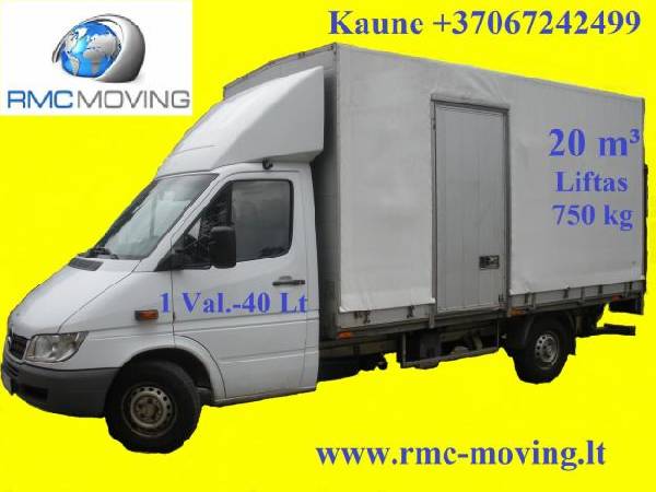 - perkraustome įmonių ir gyventojų turtą. - pervežame įvairius krovinius (baldus, pianinus, buitinę techniką, statybines medžiagas ir kt.) - tarptautiniai perkraustymai krovinių pervežimai. - krovėjų paslaugos. - Pakavimo medžiagos, dėžių nuoma ir pardavimas. - išvežame statybines šiukšles, nenaudojamus baldus, buitinę techniką. - pervežame įvairius krovinius visoje Lietuvoje. - statybinių medžiagų pervežimas ir užnešimas, - Vietinis bei tarptautinis parodų pervežimas, montavimas. - dirbame be poilsio dienų. - išrašome sąskaitas. MIKROAUTOBUSAS 3,2 ilgis Mieste 1val. - 30Lt (iki 1,5t. ) Užmiestyje 1km. 1,0Lt (iki 1,5t. ) Minimalus užsakymo laikas 1val. MIKROAUTOBUSAS su liftu 4,2m ilgis, baldinė būda 20 m³ Mieste 1 val. 40 Lt (iki 1,5 t) Užmiestyje 1 km. 1,3 Lt Minimalus užsakymo laikas 1val. SU LIFTU 6 m ilgis, tentas, 45 m³ Mieste 1 val.-60 lt (iki 5 tonu) Užmiestyje 1 km- 1,7 Lt ( iki 5 tonu) Minimalus užsakymo laikas 2val. Mandagūs krovėjai TIK 20-25LT/VAL. www.rmc-moving.lt RMC MOVING Pervežimai Kaune: Tel: +37067242499 El. paštas: kaunas@rmc-moving.lt Skype: RMC-MOVING-KAUNAS Pervežimai Vilniuje: Tel: +370 607 89677 +370 684 85409 El. paštas: vilnius@rmc-moving.lt info@rmc-moving.lt Skype: RMC-MOVING 24 tonų pervežimų kaina sutartinė Laukiame Jūsų pasiūlymų.