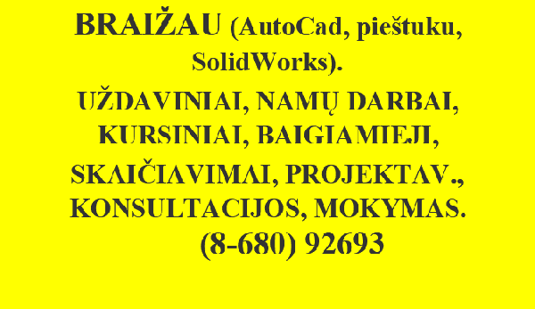 BRĖŽINIAI (AutoCAD, SolidWorks, pieštuku) ir SKAIČIAVIMAI