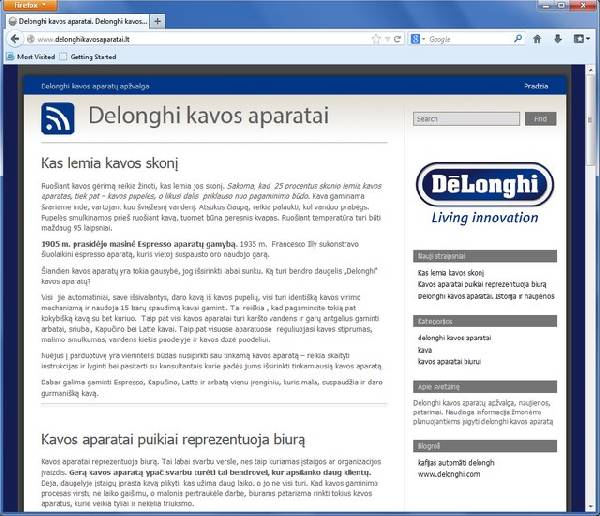 Kava bus žymiai malonesnė gerti, jei tik ji bus tinkamai išvirta. Ruošiant kavą, pravartu žinoti, kas nulemia jos skonį tuomet jūsų ruošiama kava taps iš tiesų skani. Skanią kavą jums pagelbės paruošti geras kavos virimo aparatas. Apsilankę mūsų tinklalapyje, lengvai apsispręsite, kokio gamintojo kavos aparatą naudingiausia įsigyti, nes čia surasite informaciją apie kavos aparatų gamintojus. Be to, svetainėje aprašomi kavos aparatų savybės, išskirta, kokie prietaisai geriau tinka naudojimui namie, o kokie ofise. Perskaitę pateiktą info, galėsit dar lengviau išsirinkti naująjį aparatą kavai savo namams ar biurui. http://www.delonghikavosaparatai.lt