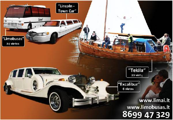 Burlaivis TEKILA vienintelis Lietuvoje, prabangus senovinis švediškas burlaivis iškyloms Kauno mariose. 20 vietu; bendra vairine su kajutkompanija; 2 kajutes poilsiui; erdvus denis; autentiškas interjeras: švediškas ažuolas, raudonmedis, tiko denis; ilgis 11m, plotis 3,5m. >Jachtos nuoma. >Katerio nuoma. >Limuzinu nuoma. >Limobuso nuoma. >Retro limuzino nuoma. >Atvežimas motociklu - cioperiu. www.limobusas.lt