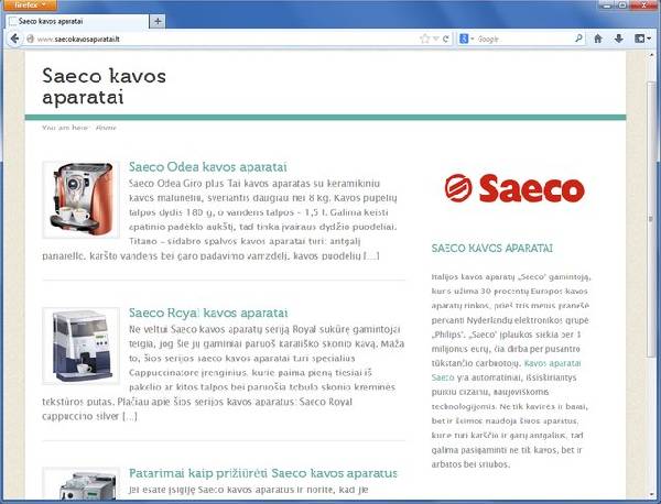 | Skelbimų sritys   | Saeco kavos aparataiSkelbimo nr. 220681, įdėtas 2014-02-08 · Perskaitė: 131