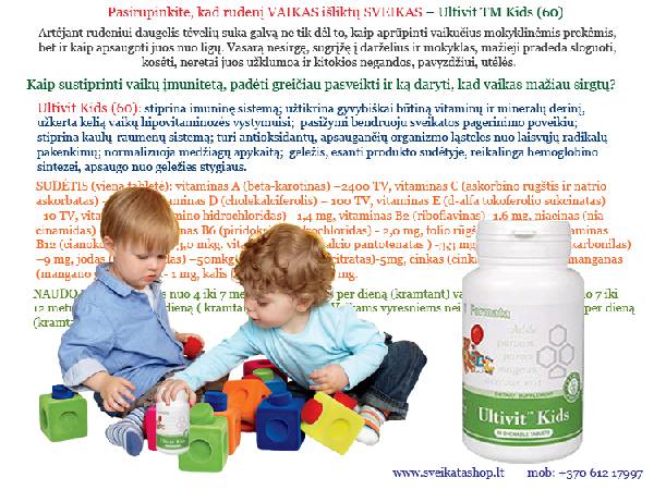 Pasirūpinkite, kad rudenį VAIKAS išliktų SVEIKAS Ultivit Kids (60)Skelbimo nr. 231278, įdėtas 2014-09-14 · Perskaitė: 398