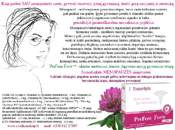 Kaip padėti SAU menopauzės metų - PerFem Forte TM, Santegra USASkelbimo nr. 231283, įdėtas 2014-09-14 · Perskaitė: 307