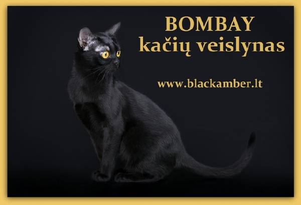 Bombay katė - mini pantera - juoda katė vario spalvos akimis, bet labai nuosaikiu ir draugišku charakteriu. BOMBAY katės - meilios, taikios, neturi poreikio sienų, baldų drąskymui.