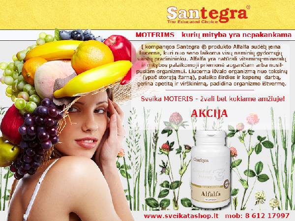 Mėlynžiedė liucerna (lotyniškai Medicago sativa) tai pupinių šeimai priklausantis, daugiametis, iki 80 centimetrų užaugti galintis žolinis augalas,turintys trilapius lapus. Liucerna išvalo organizmą nuo toksinų (ypač storąją žarną), palaiko širdies ir kepenų darbą, gerina apetitą ir virškinimą, padidina organizmo ištvermę. Liucernos veikimo spektrą sąlygoja aktyviosios sudėtinės dalys, turinčios saponinų, flavonų, izoflavonų ir kt. Be to liucerna turtinga chlorofilu, ląsteliena, baltymais; sudėtyje yra vitaminų A, B1, B6,C,E,vitamino K, karotinoidų; kalcio, magnio, fosforo, kalio, geležies, cinko, ftoro; polinesočių riebiųjų rūgščių, o taip pat eilė proteolitinių fermentų, skaidančių baltymus ir skatinančių jų įsisavinimą. Tyrimai parodė, kad saponinai, esantys liucernos sudėtyje, gali surišti cholesteriną ir blokuoti jo įsiurbimą, tuo pačiu mažindami lygį kraujyje. Saponinai taip pat padidina arterijų elastingumą, stabdo arteriosklerozinius kraujagyslių sienelių pasikeitimus ir su šiuo reiškiniu susijusius kraujagyslių susirgimus. Liucerna valo kepenis ir kraują, sąlygoja skysčių iš organizmo išsiskyrimą, pagerina priešinės liaukos sekreto nutekejima, normalizuoja vandens- druskų apykaitą. Liucerna padidina maitinančių motinų laktaciją. Dėl izoflavonų sudėties, liucerna pasižymi panašiu kaip estrogenai aktyvumu ir ji naudinga moterims menopauzės periodu, taip pat padidina maitinančių motinų laktaciją. Liucerna - viena iš nedaugelio augalų, turinti savo sudėtyje augalinės kilmės ftoro, kurį organizmas kaupia pirmiausia dantų audiniuose. Jis turi poveikį dantų emalės formavimui ir apsaugo dantis nuo karieso vystymosi. Alfalfa puiki organizmo stiprinimo priemonė. Naudinga visiems! Kaina: 12 EUR