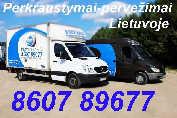 Perkraustymai Vilniuje, Kaune Lietuvoje Visoje Europoje Tarptautiniai krovinių pervežimai ir perkraustymai Krovėjai - perkraustome įmonių ir gyventojų turtą. - pervežame įvairius krovinius (baldus, pianinus, buitinę techniką, statybines medžiagas ir kt.) - Profesionalus baldų išrinkimas surinkimas, daiktų supakavimas, pilnas paruošimas transportavimui. -tarptautiniai perkraustymai krovinių pervežimai. - krovėjų paslaugos. -Krovininio transporto nuoma be vairuotojų. - Visos pakavimo medžiagos perkraustymui, dėžių nuoma ir pardavimas. - išvežame statybines šiukšles, nenaudojamus baldus, buitinę techniką. - pervežame įvairius krovinius visoje Lietuvoje. - Siuntų ir krovinių pervežimas į/iš visą Europą. - prekių (baldų) išvežiojimas Vilniaus ir Kauno miestuose, Lietuvoje. - Vietinis bei tarptautinis parodų pervežimas, montavimas. - dirbame be poilsio dienų. - išrašome sąskaitas. MIKROAUTOBUSAI Vilniuje, Kaune 4,2-4,5 m ilgis , 14-17 m³ (Min. 1 val.) Mieste 1 val. 12-14 Eur (iki 1,5 t.) Užmiestyje 1 km. - 0.35 Eur. MIKROAUTOBUSAI Vilniuje ir Kaune su liftu 4,3m ilgis, baldinė būda 21 m³ (Min.1 val.) Mieste 1 val. - 14 Eur (iki 2 t) . Užmiestyje 1 km. 0.40 Eur. SUNKVEŽIMIS SU LIFTU Vilniuje 7,2 m ilgis, 45 m³ (min. 2 val.) Mieste1 val.- 17 Eur (iki 5 tonu) Užmiestyje 1 km- 0.50 Eur ( iki 5 tonu). KROVĖJAI-PAKUOTOJAI TIK 8-10 Eur - 1 VAL. Visos kainos nurodytos be PVM. Pianinų pervežimas su krovėjais nuo 50 Eur. Krovinių pervežimams iki 24 tonų kaina sutartinė. Siuntų išvežiojimai Vilniuje, Kaune ir Lietuvoje www.rmc-moving.lt www.moving-cargo.net www.perkraustymai-pervezimai.com www.pervezimas-perkraustymas.com RMC-MOVING Vilniuje: +370 607 89677; +370 684 85407; +370 684 85409; Logistika Tel. +37064712331 Tel.fax: +370 5 2137615 Skype: rmc-moving; Rmc-moving-logistic El.paštas: info@rmc-moving.lt, vilnius@rmc-moving.lt, (logistika: rmc@rmc-moving.lt ) Panerių g. 51-200a, Vilnius Kaune: +370 672 42499 +370 684 44820 Skype: rmc-moving-kaunas El.paštas: kaunas@rmc-moving.lt Pramonės pr.23, Kaunas Minimalus mikroautobuso užsakymo laikas 1 val. Sunkvežimo bei tik krovėjų minimalus užsakymo laikas 2 val. Kaina: 12 EUR
