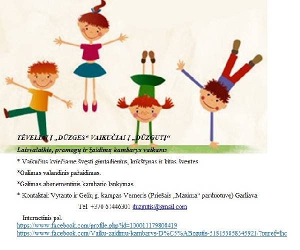 Vaikų žaidimų kambarys Dūzgutis GarliavojeSkelbimo nr. 254074, įdėtas 2016-01-30 · Perskaitė: 1245