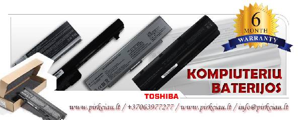 www.pirkciau.lt Pristatymas į visus Lietuvos miestus per 1-2 d.d. Visoms Naujoms baterijoms suteikiama 6 mėn. garantija ! Parenkame Jums tinkantį modelį. MŪSŲ BATERIJOS DIDESNĖS TALPOS. KAINA 39 eur. Toshiba C50, C55. Toshiba Satellite Pro A200, A210, A300, L300, L500. Toshiba A500, A505D, P500. Toshiba C50, P50. Toshiba C650, C660. Toshiba L600, L630. Toshiba Satellite L735, L740, L750, L750D, L755, L770D, L775, M300, M310. Toshiba Satellite C50, C50D, C50t, C55, C55D, C55Dt, C55t, C70, C70D, C75, C75D. Toshiba Satellite C840, C840D, C845, C850, C850D, C855, C855D, C870, C870D, C875, C875D. Toshiba Satellite L70, L70D, L75, L75D, L840, L840D, L845, L850, L850D. Toshiba P300, L350, L500. Toshiba Z830, Z835. Toshiba R830, R835. http://pirkciau.lt/310-baterijos-nesiojamu-kompiuteriu www.pirkciau.lt Vilniaus 230, Šiauliai (salonas) I-V 9:00 - 18:00 VI 9:00 - 14:00 E-mail: info@pirkciau.lt Skype: rego-gps Pristatymas visoje Lietuvoje Kaina: 39 EUR