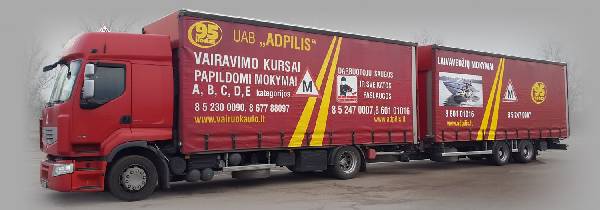 Viena iš lyderiaujančių vairavimo mokymo paslaugų teikėjų UAB Mokymo centras ADPILIS, kviečia visus, norinčius išmokti vairuoti. Įmonė savo veiklą vykdo nuo 2006 m., esame Lietuvos vairavimo mokyklų asociacijos narys. UAB mokymo centras ,,Adpilis" rengia A1, A2, A, B, C, CE, D kategorijų vairavimo kursus. Mes siūlome mokymą moderniose klasėse ir naujausią metodinę medžiagą. Naudojame šiuolaikišką mokymo įrangą: multimedija projektorius, specialią mokomąją kompiuterinę programą.