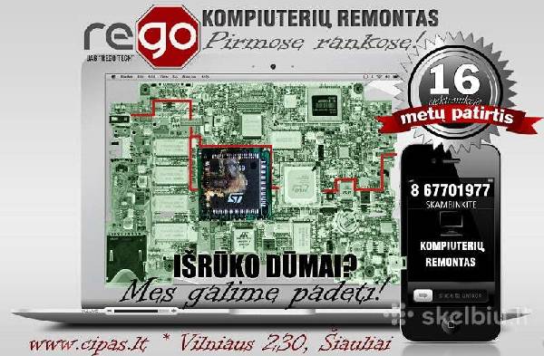 Naudojantis kompiuteriu staiga pajutote degėsių kvapą? Vadinasi iš Jūsų kompiuterio išlindo Jūsų nekviestas džinas. Kai taip nutiko Jums, mes patariame kuo skubiau išjungti kompiuterį iš maitinimo lizdo, ištraukti bateriją, nepadarius to yra didžiulė tikimybė, kad perdegs lustas ar procesorius. Po nekviesto svečio apsilankymo nerekomenduojame kompiuterio vėl jungti. PATARIAME kuo skubiau savo kompiurterį pristatyti pas specialistą, kuris džino sukeltus padarinius pasistengs pašalti. Maitinimo grandinių remontas yra priskiriamas prie sudėtingiausių kompiuterinės technikos gedimų remonto, todėl kad šis remontas reikalauja krupštumo, susikaupimo ir laiko. Jei jau neklaužada džinas ilšlindo iš Jūsų kompiuterio, kuo skubiau pristatykite jį mums adresu Vilniaus g. 230, Šiauliai ir mes kuo skubiau Jums pagelbėsime. Ką mes padarysime su Jūsų kompiuteriu? : - PIRMIAUSIA IŠRINKSIME JĮ - SURASIME KURIOJE VIETOJE DŽINAS PRIDARĖ DAUGIAUSIA ŽALOS - JEI BUS SUDEGUSI MIKROSCHEMA, MES JĄ KUO SKUBIAU PAKEISIME - PABĖGĘ TAKELIAI, MES JUOS NAUJUS PRAVESIME Suradus gedimą ir jį pašalinus, mes Jūsų kompiuterį paruošime pilnam, tolimensiam gyvenimui: surinksime jį, išvalysime dulkes, ištestuosime ir gražinsime kuo puikiausiai veikiantį kompiuterį. Mus rasite adresu : Vilniaus g.230, Šiauliai. (Patogus privažiavimas). Tilžės 109 PC Saulės miestas (priešais Hesburger) Mob: +37067701977, El.p. info@cipas.lt. Skype: cipas.lt Daugiau informacijos internetinėje svetainėje: www.cipas.lt Darbo laikas: I-V: 9-18 val., VI: 9-14 val. Kompiuterių remontas Šiauliuose. MŪSŲ REMONTOS IŠSKIRTINĖS SAVYBĖS: remontas atliekmas vietoje, visa remontui reikalinga įranga vietoje, importuojame iš gamintojų detales už geriausią kainą, visi kompiuteriai registruojami sistemoje, kad klientui būtu ramu ir saugu, remontas atliekmas greitai, kruoščiai, sutaisomi praktiškai visi gedimai, priskiriami profesionalams, visapusiška konsultacija, suteikiama garantija iki 6 mėn. remonto darbams. Kaina: 5 EUR