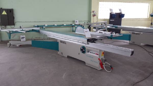 Slankiojančio stalo matmenys - 3800x375mm Pjovimo ilgis - 3800mm Plotis tarp pjūklo ir liniuotės - 1140mm Pjūklo diametras - 400mm Pjovimo aukštis (90°) - 125 mm Pjovimo aukštis (45°) - 115mm Pagrindinio veleno sukimosi greitis: - 4500/6000rpm Pagrindinio veleno diametras - 30mm Pjūklo vartymas - 0-45º Pagrindinis variklis -5,5 Kw Pjūklo kilnojimas, aukštyn ir žemyn, elektrinis valdymas. Priešpjūklio diametras - 120mm Priešpjūklio sukimosi greitis 7000- 8000rpm Priešpjūklio ašies diametras - 20mm Priešpjūklio variklis - 1,1 kW Transportavimo matmenys - 3800x2450x900mm Svoris - 820 Kg Kaina: 6499 EUR