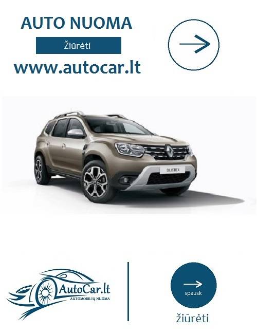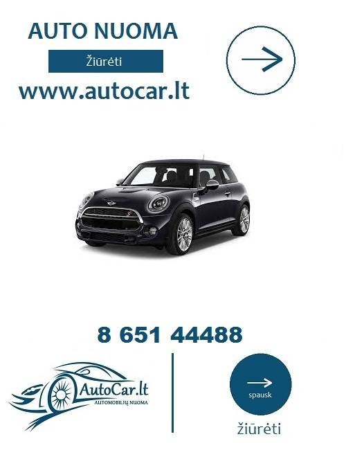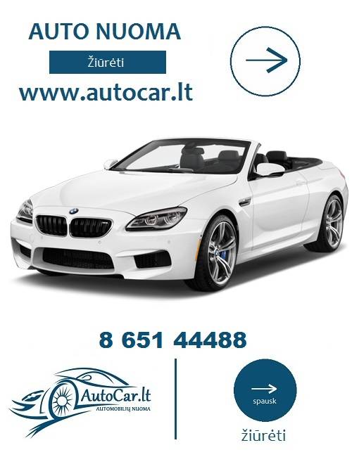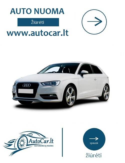 www.autocar.lt - tai automobilių nuomos bendrovė siūlanti išsinuomoti lengvuosius automobilius visuose Lietuvos oro uostuose. Autonuoma Kauno oro uoste - Autonuoma Vilniaus oro uoste, automobiliu nuoma Palangos oro uoste. Automobiliai pristatomi visą parą be išeiginių iš anksto suderinus laiką. Nuomojant automobilį ilgesniam laikui - visi priedai arba nemokamai arba už simbolinę kainą. Siūlome vaikišką kėdutę, stogo bagažinę, dviračių laikiklius, navigaciją ir karštos kavos puodelį pasitinkant oro uoste. Automobilių rezervacijai nereikalingas užstatas. Imamas simbolinis mokestis rezervacijos patvirtinimui už pirmą nuomos dieną. Susisiekti galima telefonu tel.: +37065144488