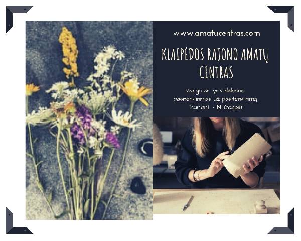 VŠĮ Klaipėdos rajono amatų centras nepamirštamos edukacijos kiekvienam.Skelbimo nr. 273227, įdėtas 2019-03-12 · Perskaitė: 397