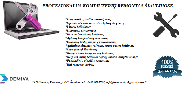 Kompiuterių remontas ŠiauliuoseSkelbimo nr. 274317, įdėtas 2019-04-27 · Perskaitė: 257