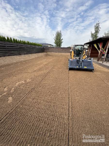 - Ruošiame pagrindus, klojame trinkeles; - Statome bortus; - Įrengiame drenažo sistemas; - Statome laiptus iš trinkelių; - Įrengiame lietaus kanalizacijas; - Įrengiame kelius, aikšteles; - Teikiame apželdinimo paslaugas; - Tvarkome šlaitus; - Mulčiuojame krūmus; - Atvežame žvyrą, skaldą, juodžemį; - Nuomojame statybinę techniką su darbuotojais ir kuru; - Atliekame žemės kasimo/gręžimo darbus; - Kiti darbai. Dirbame su nuosava statybine technika, todėl visi darbai vyksta sklandžiai ir nenutrūkstamai. Į užsakymus reaguojame operatyviai ir greitai. Kokybė yra mūsų prioritetas. Daugiau informacijos tel.: +37067912510 Darius
