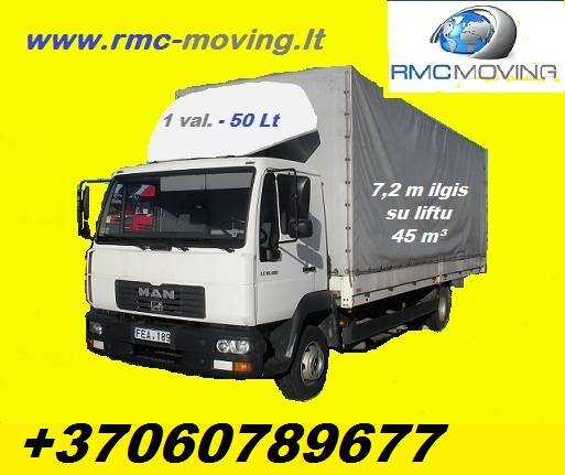 -PROFESIONALIAI perkraustome įmonių ir gyventojų turtą. - pervežame įvairius krovinius (baldus, pianinus, buitinę techniką, statybines medžiagas ir kt.) - tarptautiniai perkraustymai krovinių pervežimai. - krovėjų paslaugos. - pakavimo medžiagos, dėžių nuoma ir pardavimas. - profesionalus baldų ir kt. Daiktų supakavimas, pilnas paruošimas transportavimui. - išvežame statybines šiukšles, nenaudojamus baldus, buitinę techniką. - pervežame įvairius krovinius visoje Lietuvoje. - Vietinis bei tarptautinis parodų pervežimas, montavimas. - dirbame be poilsio dienų. - išrašome sąskaitas. MIKROAUTOBUSAI 3,2 m ilgis Mieste 1val. - 35Lt (iki 1,5t. ) Užmiestyje 1km. 1,10Lt (iki 1,5t. ) MIKROAUTOBUSAS 4,2 m ilgis Mieste 1 val. 35 Lt (iki 1,5 t.) Užmiestyje 1 km. 1,10 Lt MIKROAUTOBUSAS Vilniuje su liftu 4,3m ilgis, baldinė būda 21m3 (min. 1 val.) Mieste 1 val. 45 Lt (iki 2 t.) Užmiestyje 1 km. 1 ,3Lt MIKROAUTOBUSAS Klaipedoje su liftu 4.2m ilgis, baldinė būda 20m3 (min 1val.) Mieste 1val. 35Lt (iki 1,5t.) Užmiestyje 1 km - 1.3Lt(iki 1,5t.) MIKROAUTOBUSAI Kaune 3,2 m ilgis Mieste 1val. - 35Lt (iki 1,5t. ) Užmiestyje 1km. 1,10Lt (iki 1,5t. ) MIKROAUTOBUSAS 4,2 m ilgis Mieste 1 val. 35 Lt (iki 1,5 t.) Užmiestyje 1 km. 1,10 Lt SUNKVEŽIMIS SU LIFTU 7,2 m ilgis, 45m3 (min 2val.) Vilniaus ir Kauno mieste 1 val.-55 lt (iki 5 tonu) Užmiestyje 1 km- 1,6 Lt ( iki 5 tonu) MANDAGŪS KROVEJAI :) TIK 20- 25LT-VAL. www.rmc-moving.lt RMC-MOVING Vilniuje: +370 60789677; +370 684 85407; +370 684 85409; Tel.fax: +370 5 2137615 Skype: RMC-MOVING El.paštas: info@rmc-moving.lt vilnius@rmc-moving.lt Kaune: +370 672 42499 Skype: RMC-MOVING-KAUNAS El.paštas: kaunas@rmc-moving.lt Raudondvario pl. 93, Kaunas Klaipėdoje: +370608 25111 Skype: rmc-moving-klaipeda El.paštas: klaipeda@rmc-moving.lt Šilutės pl. 79, Klaipėda Minimalus užsakymo laikas 1val. Laukiame Jūsų pasiūlymų. Perkraustymas, pervežimas: į/iš Vokietiją, Austriją, Šveicariją, Čekiją, Olandiją, Norvegiją, Švediją, Daniją,Rusiją, Prancūziją, Italiją, Ispaniją,Portugaliją ir kt. šalis. Minimalus užsakymo laikas 1val.