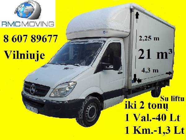 -PROFESIONALIAI perkraustome įmonių ir gyventojų turtą. - pervežame įvairius krovinius (baldus, pianinus, buitinę techniką, statybines medžiagas ir kt.) - tarptautiniai perkraustymai krovinių pervežimai. - krovėjų paslaugos. - pakavimo medžiagos, dėžių nuoma ir pardavimas. - profesionalus baldų ir kt. daiktų supakavimas, pilnas paruošimas transportavimui. - išvežame statybines šiukšles, nenaudojamus baldus, buitinę techniką. - pervežame įvairius krovinius visoje Lietuvoje. - Vietinis bei tarptautinis parodų pervežimas, montavimas. - dirbame be poilsio dienų. - išrašome sąskaitas. MIKROAUTOBUSAI 3,2 m ilgis Mieste 1val. - 30Lt (iki 1,5t. ) Užmiestyje 1km. 1Lt (iki 1,5t. ) MIKROAUTOBUSAS 4,2 m ilgis Mieste 1 val. 30 Lt (iki 1,5 t.) Užmiestyje 1 km. 1 Lt MIKROAUTOBUSAS Vilniuje su liftu 4,3m ilgis, baldinė būda 21 m³ (min.1 val.) Mieste 1 val. 40 Lt (iki 2 t) Užmiestyje 1 km. 1,3 Lt MIKROAUTOBUSAS Klaipedoje su liftu 4.2m ilgis, baldinė būda 20m3 (min 1val.) Mieste 1val. 30Lt (iki 1,5t.) Užmiestyje 1 km - 1.2Lt(iki 1,5t.) MIKROAUTOBUSAS Kaune su liftu 4.2m ilgis, baldinė būda 20m3 (min 1val.) Mieste 1val. 40Lt (iki 1,5t.) Užmiestyje 1 km - 1.3Lt(iki 1,5t.) SUNKVEŽIMIS SU LIFTU 7,2 m ilgis, 45m3 (min 2val.) Vilniaus ir Kauno mieste 1 val.-50 lt (iki 5 tonu) Užmiestyje 1 km- 1,5 Lt ( iki 5 tonu) MANDAGŪS KROVEJAI :) TIK 15 - 25LT-VAL. www.rmc-moving.lt RMC-MOVING Vilniuje: +370 60789677; +370 684 85407; +370 684 85409; Tel.fax: +370 5 2137615 Skype: RMC-MOVING El.paštas: info@rmc-moving.lt vilnius@rmc-moving.lt Kaune: +370 672 42499 Skype: RMC-MOVING-KAUNAS El.paštas: kaunas@rmc-moving.lt Klaipėdoje: +370608 25111 Skype: rmc-moving-klaipeda El.paštas: klaipeda@rmc-moving.lt Šilutės pl. 79, Klaipėda Panevėžyje: +37068485409 El.paštas :info@rmc-moving.lt Minimalus užsakymo laikas 1val. Laukiame Jūsų pasiūlymų. Perkraustymas, pervežimas: į/iš Vokietiją, Austriją, Šveicariją, Čekiją, Olandiją, Norvegiją, Švediją, Daniją, Rusiją, Prancūziją, Italiją, Ispaniją, Portugaliją ir kt. šalis.