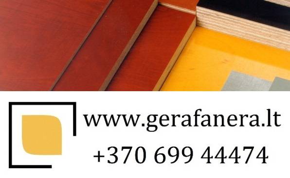 Fanera naudojama: Baldų gamybai; Vidaus / lauko apdailai; Sienų konstrukcijoms; Vilkikų priekaboms, puspriekabėms; Sunkvežimiams; Betonavimo darbams; Pastoliams; Klojiniams; Perdangoms; Grindims; Lentynoms; Reklaminiams stendams; Valtims; Laivams; Jachtoms; Kitiems darbams, kur reikalaujama atsparumo drėgmei, vandeniui, trinčiai. Išsamesnė info: www.gerafanera.lt, +370 699 44474 UAB Likmerė Kauno g. 122, Ukmergė, LT-20115 Mob. +370 699 44474 Tel. +370 340 55805 Faks. +370 340 44419 El. paštas linas@likmere.lt Tinklalapis www.gerafanera.lt Raktiniai žodžiai: prekyba fanera gamintojo kaina, baldinė fanera, statybinė fanera, pramoninė fanera, drėgmei atspari fanera, laminuota fanera, gera fanera, beržo fanera, fanera vilkikams, priekaboms, puspriekabėms, sunkvežimiams, fanera betonavimui, fanera pastoliams, fanera klojiniams, fanera perdangoms, fanera valtims, jūrinė fanera, faneros gaminiai, Latvijas Finieris fanera, faneros atraižos, fanera Ukmergėje, prekyba faneros atraižomis