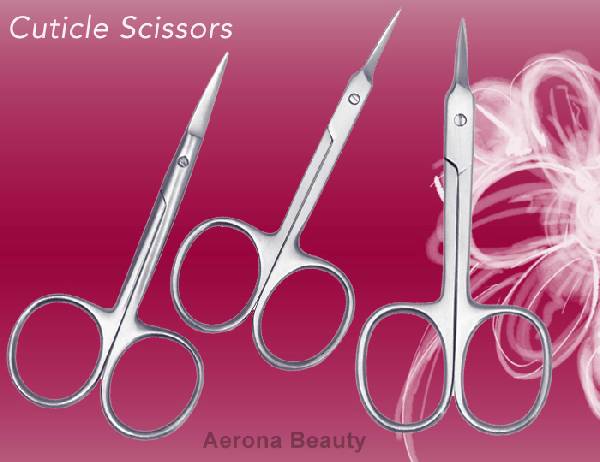 Cuticle Scissors include a wide range of Cuticle Scissors straight /curved,Baby Scissors,Nose Scissors and Heavy Duty Nail Scissors.AERONA BEAUTY's Nail and Cuticle Scissors are outstanding in functional design and quality. Superior craftsmanship, best design and especially hardened blades guarantee a sharp and precise cut. The grip has been ergonomically designed for comfort and control. Each piece is individually crafted with top quality material then tested for durability. Made from special Stainless Steel, gives it long lasting cutting ability.