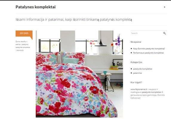 Pagerinkite savo miegą įsigydami naują ir šiuolaikišką patalynės komplektą. Galite rinktis iš medvilnės, poplino, satino, premium satino bei kitų patalynės audinių. Siūlome patalynės komplektus, margintus įvairiais raštais bei piešiniais, tarp jų ir patalynės komplektus su 3D nuotraukomis: http://www.patalyneskomplektai.com