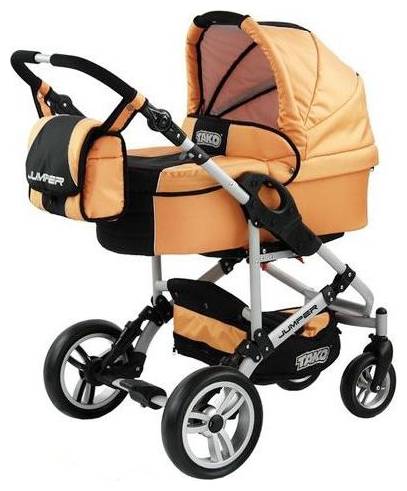 Geros būklės vežimėlis TAKO JUMPER X 3 in 1: lopšelis, sportinis vežimėlis, automobilinė kėdutė. Yra priedai nuo lietaus, vabzdžių; krepšys.