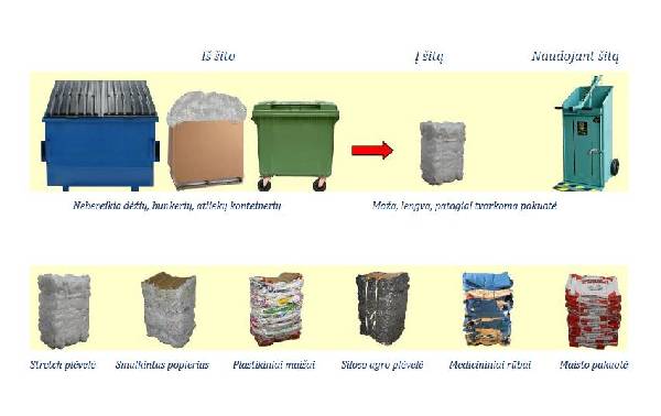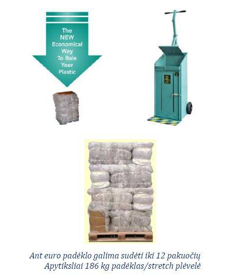 Tai yra puikus sprendimas įmonėms, kurios susiduria tvarkant nedidelės apimties atliekas. Rankinis atliekų presas išsprendžia atliekų sandėliavimo ir transportavimo problemas. Yra galimybė supakuoti kartono atliekas iki 25 kg, o siloso agro plėvelę iki 35 kg svorio pakuotę.