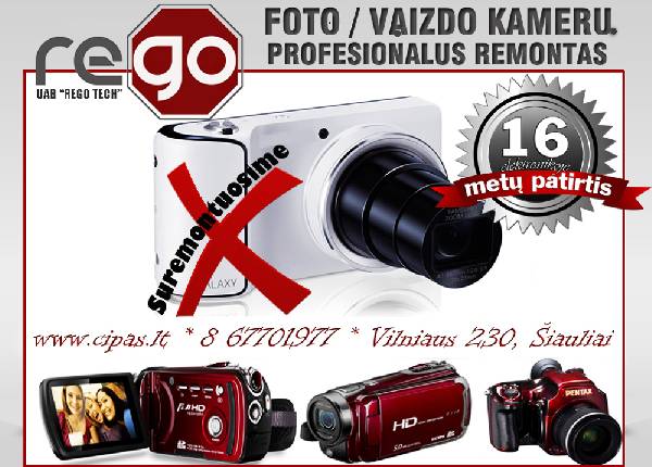 VISŲ MODELIŲ VISAPUSIŠKAS FOTOAPARATŲ / VAIZDO kamerų remontas