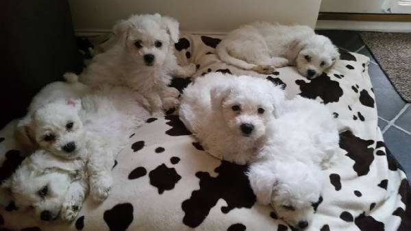 Mano gražus šuniukas atsivedė 7 gražius sveikus bišonų šuniukus. 4 kalytes ir 2 berniukus.