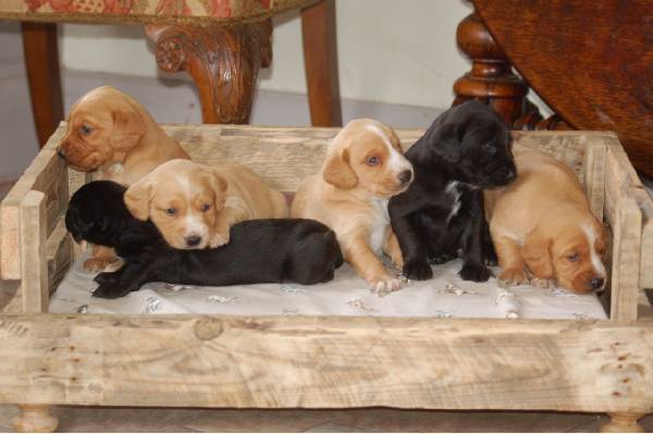Augiami mūsų šeimos namuose, kasdien bučiuojami, glamonėjami ir žaidžiami, jie myli žmones ir vaikus. Šie šuniukai yra sveiki, žaismingi ir mylintys. Šiuo metu jie pratinami prie Royal Canin šuniukų ėdalo. Reguliariai maudomi ir laikomi saugioje, švarioje aplinkoje mūsų namuose. Jie išvyks iš namų gavę pirmąją vakcinaciją, su mikroschema, nukirminus, patikrinę veterinarą, turėdami KC sertifikatus ir dokumentus, 5 savaičių nemokamą šuniukų draudimą ir kvapo antklodę. Kaina: 400 EUR