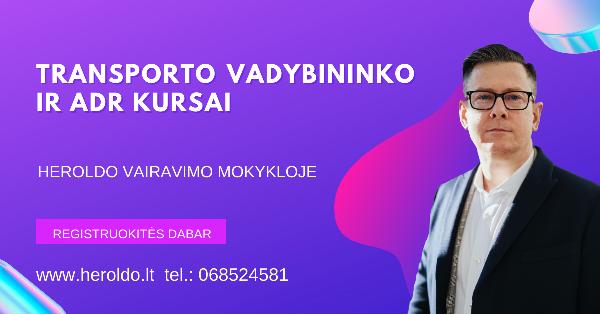 Kviečiame į Transporto vadybininko kursus Šiauliuose; B kategorijos kursus; Pažeidusiems KET kursus; ADR kursus; Papildomos vairavimo pamokas. Skambinkite ir registruokitės tel.:868524581. Daugiau informacija https://www.heroldo.lt/